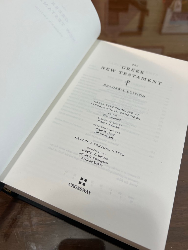 Resource Review: Crossway’s The Greek New Testament, Reader’s Edition, Produced at Tyndale House, Cambridge